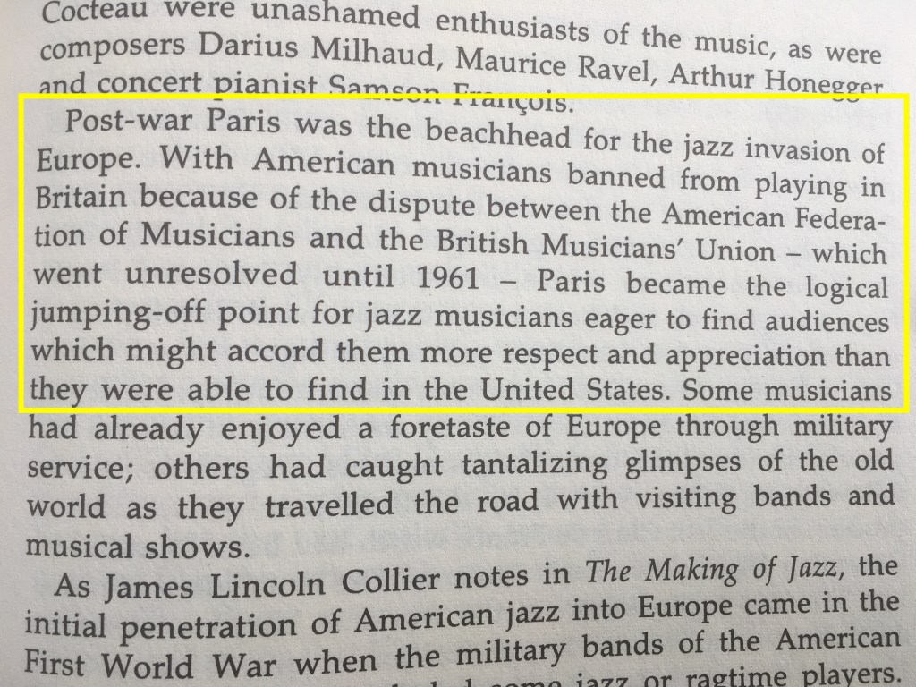 There are a few more factors, but the main answer, it turns out, lies in one of the oddest factoids of musical history I encountered for the 20th century: American musicians were, with few exceptions, banned from performing in the UK for almost thirty years,from 1933 until the late 1950s.