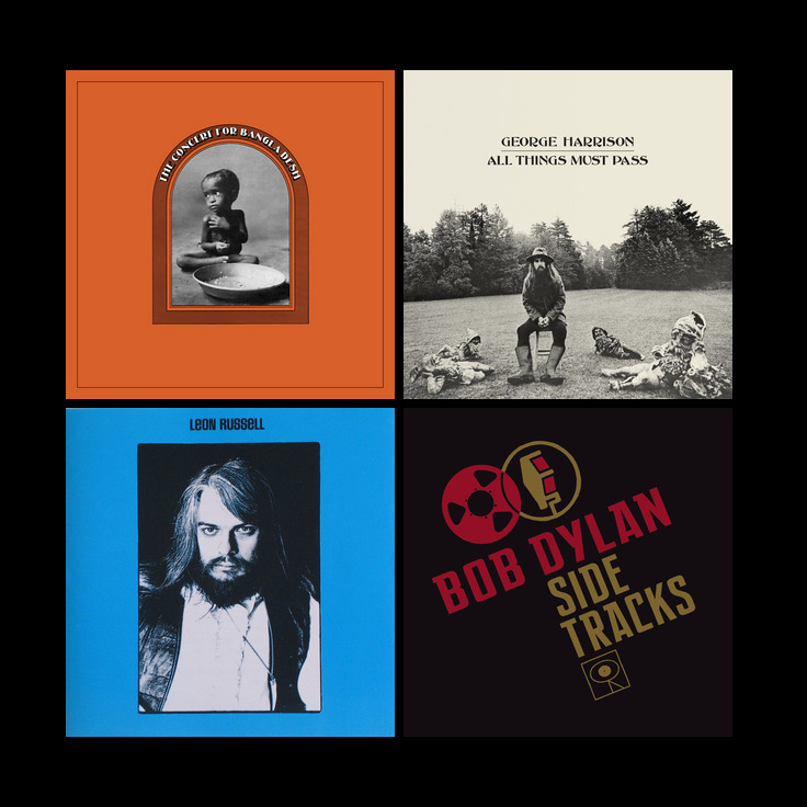 Ooh, it’s the second entry of macrodosing: It’s about interlinked and side-stepping projects involving at least two out of three names: Harrison, Russell and Dylan. The starting point is a project involving all of them: George Harrison’s Concert for Bangla Desh (1971) which lured Dylan out of his non-performing period (with very good results), yet it’s Russell who steals the show with his gospel-soul-roots-ranting. Next up is, inevitably, Harrison’s All Things Must Pass (1970) from the year before, featuring a Dylan-song and setting him up commercially and artistically for the Bangla Desh event. What a classic. We continue with Russell’s proper solo debut Leon Russell from 1971 (before the Bangla Desh concert) – there’s a Dylan-song variant and Harrison plays on it (yet it’s hard to find anyone from 1971’s roots rock circuit not involved with this record). However, the album gets caught up in its own matted beard. We conclude with the Dylan-compilation Side Tracks from 2013, featuring the Russell-produced 1971-single „Watching the River Flow“ – apart from his appearance at the Bangla Desh Concert, this track might present Dylan’s biggest step back into business in his quiet phase between 1970 and 1973. Macrodose achieved!