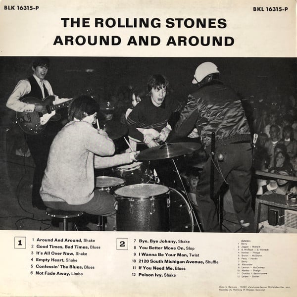 Of interest: 12×5 sports the ‘first’ published version (which was the second one they recorded) of “Time Is on My Side”, one of their best early tracks, which is slightly less bluesy and a bit faster than the second version (first to be recorded) that would later crop up on their UK-album Rolling Stones No. 2. The short edit of “2120 South Michigan Avenue” (an homage to their visit to Chess studios) is here. Since that piece is just one cool instrumental blues groove stupidly edited down to “single length” here, I much prefer the long version which showed up on a CD-reissue four decades later – or was available on the German/French LP Around and Around released at roughly the same time, but nowhere else.